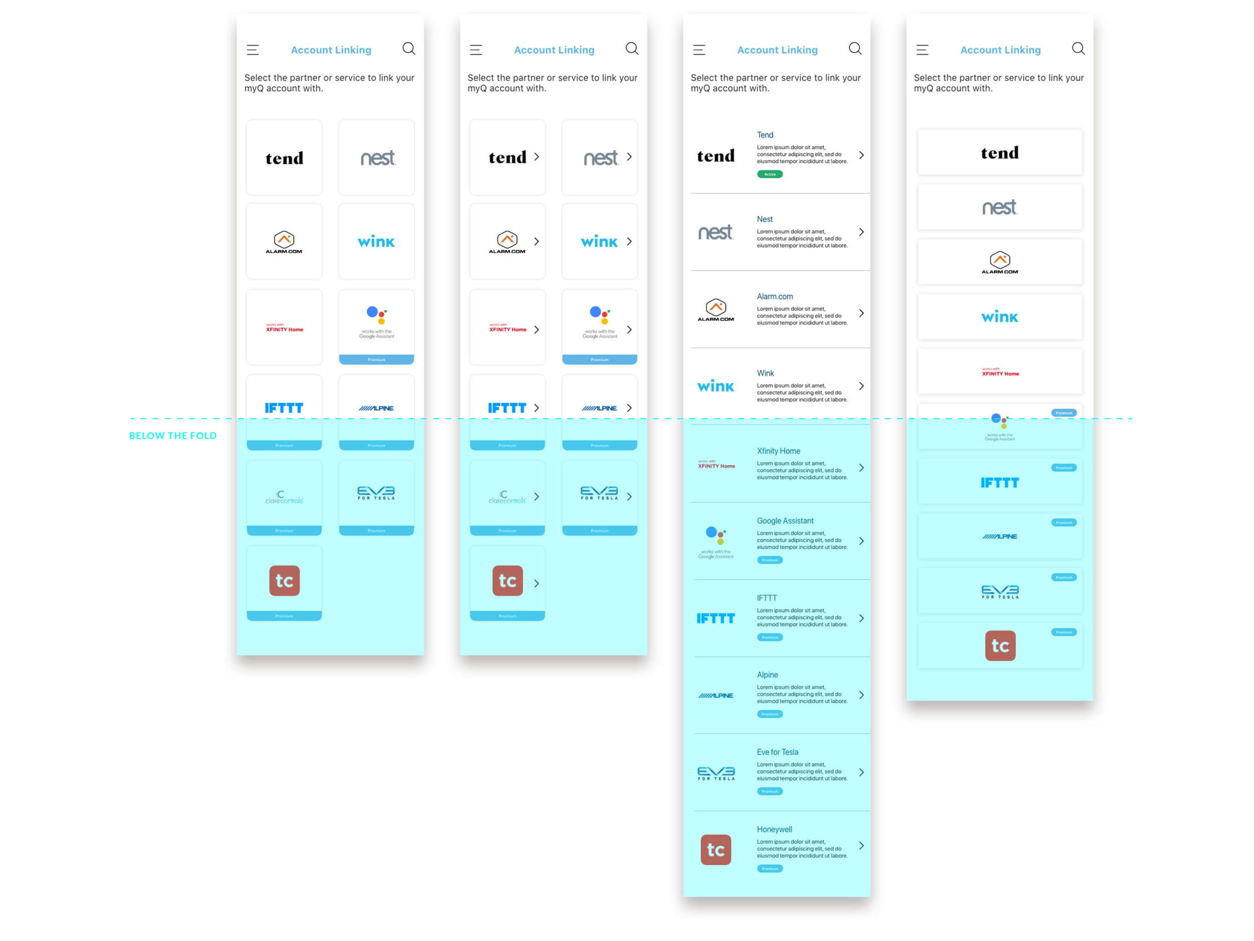 The testing results surprised me a bit. On one hand I thought that because people are always on-the-go, having a partner list that was a quick read would be preferred, however, people don’t mind scrolling or taking the time to read brief description text. Even if people don’t have Wink app or use Xfinity, they found value in seeing this information (this would even persuade a user to get that partners’ app). Scrolling has become apart of daily life and, as such, the amount a user has to scroll doesn’t seem to be a pain point in this use case.